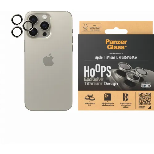 PanzerGlass Hoops cameralens cover, iPhone 15 Pro / 15 Pro Max, titanium