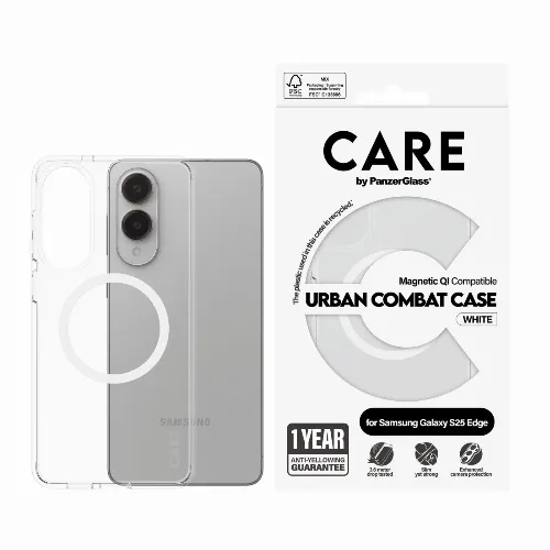 CARE by PanzerGlass - Flagship hoesje Transparant Urban Combat w. Wit Qi Compatibel Samsung S25 Edge