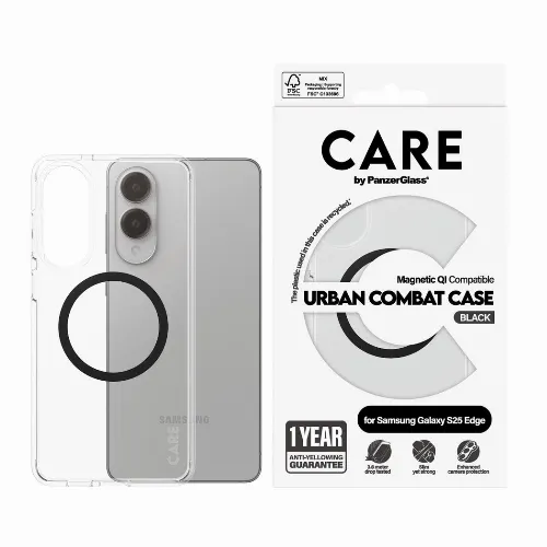 CARE by PanzerGlass - Flagship hoesje Transparant Urban Combat w. Zwart Qi Compatibel Samsung S25 Edge