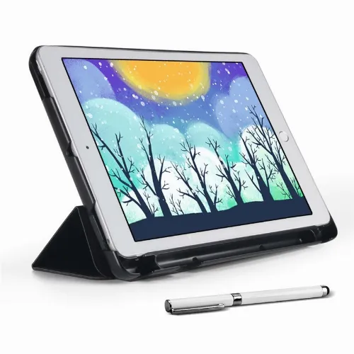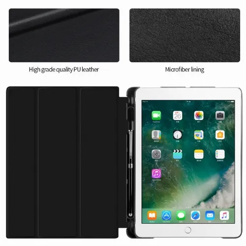 Hoes met opbergvak, USB-kabel Apple iPad 9.7" 2017, 2018, Zwart
