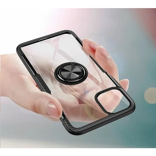 Hoesje met ringhouder voor iPhone 12 mini, Transparant/Zwart
