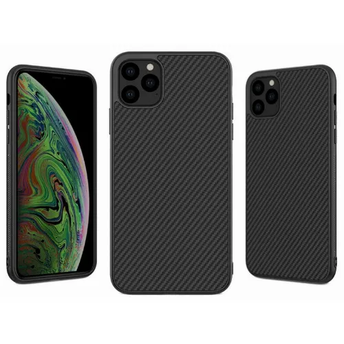 Mobilhoesje voor iPhone 13 Pro met koolstofvezel look, Zwart