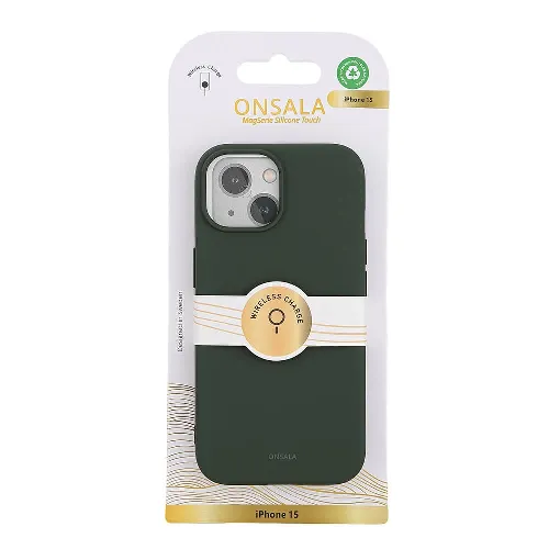 ONSALA Mobilskal med Silikonkänsla MagSeries Olive Green - iPhone 15