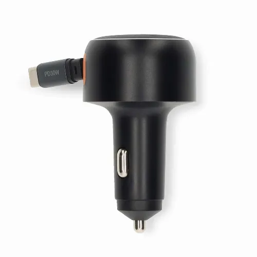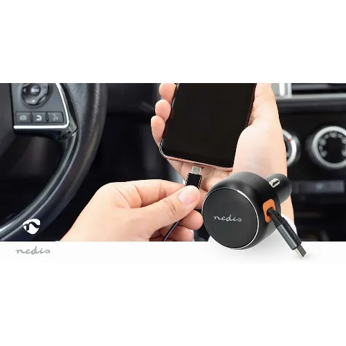 Nedis Autolader | 30 W | 2.4 / 3.0 A | Outputs: 1 | USB-C™ intrekbare kabel | 0.70 m | Automatische Voltage Selectie