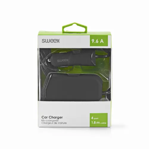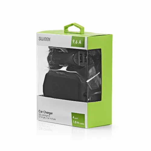 Sweex Autolader 4-Uitgangen 9.6 A USB Zwart