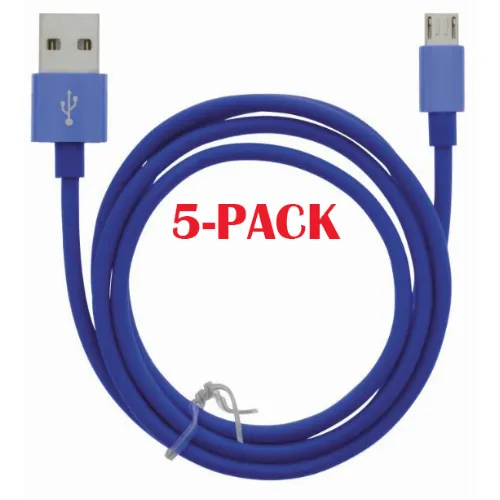 5-PACK Kabel USB-A - MicroUSB 2.4A, 1m, Blauw