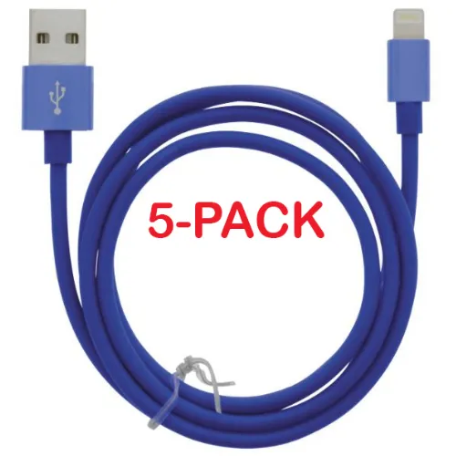 5-pak kabel USB-A - Lightning 2.4A, 1m, Blauw