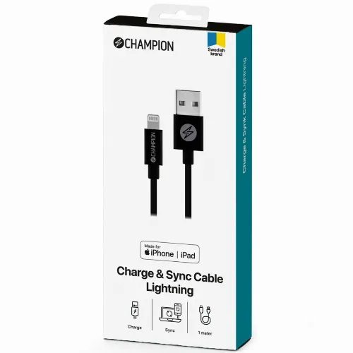 Champion USB-A naar Lightning-kabel 1m zwart