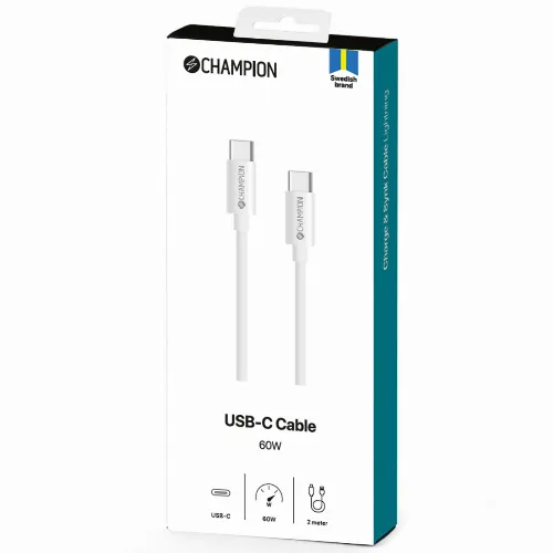 Champion USB-C Kabel 60W 2m Vit