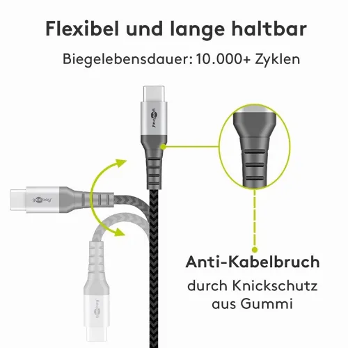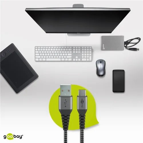 Goobay USB-C™ till USB-A textilkabel med metallkontakter 2 m elegant och extra robust anslutningskabel för enheter med USB-C™-port