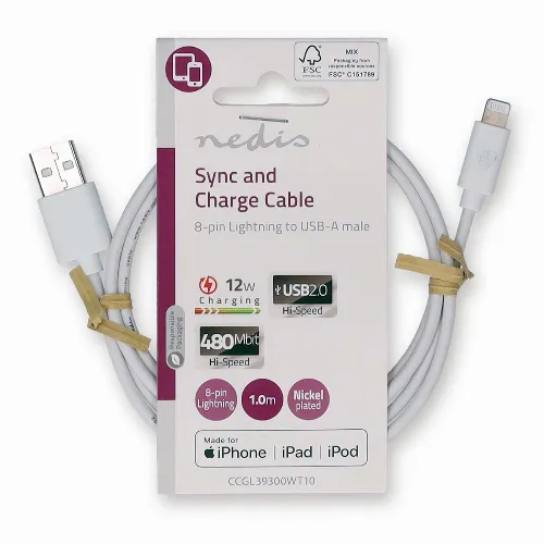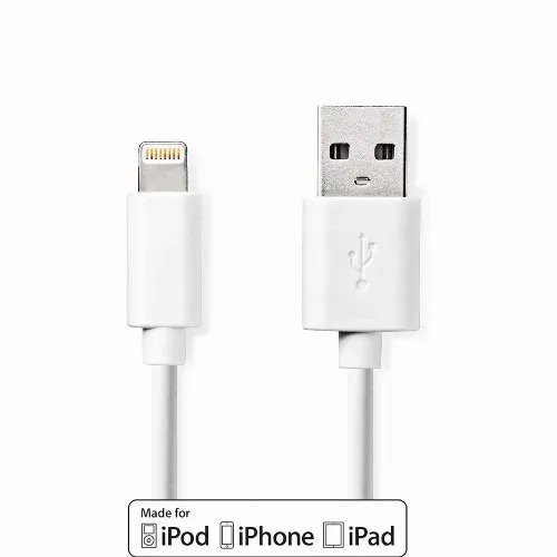 Nedis Lightning Kabel | USB 2.0 | Apple Lightning 8-Pins | USB-A Male | 480 Mbps | Vernikkeld | 1.00 m | Rond | PVC | Wit | Label