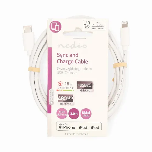 Nedis Lightning Kabel | USB 2.0 | Apple Lightning 8-Pins | USB-C™ Male | 480 Mbps | Vernikkeld | 2.00 m | Rond | PVC | Wit | Label