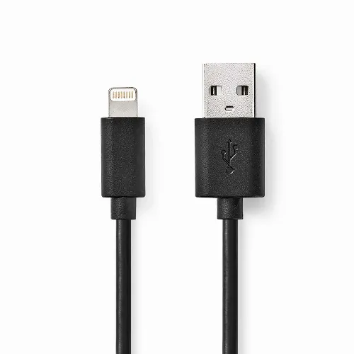 Nedis Lightning Kabel | USB 2.0 | Apple Lightning 8-Pins | USB-A Male | 480 Mbps | Vernikkeld | 1.00 m | Rond | PVC | Zwart | Doos