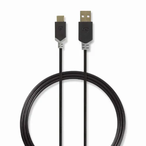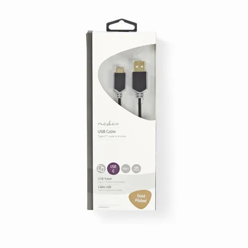 Nedis USB-Kabel | USB 2.0 | USB-A Male | USB-C™ Male | 60 W | 480 Mbps | Verguld | 1.00 m | Rond | PVC | Antraciet | Window Box
