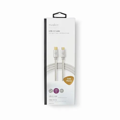 Nedis USB-Kabel | USB 2.0 | USB-C™ Male | USB Micro-B Male | 10 W | 480 Mbps | Verguld | 2.00 m | Rond | Gevlochten / Nylon | Aluminium | Cover Window Box