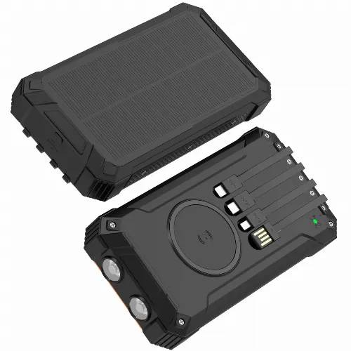 Denver PowerBank 20.000 mAh Solcell 4st kablar + trådlös laddning Svart