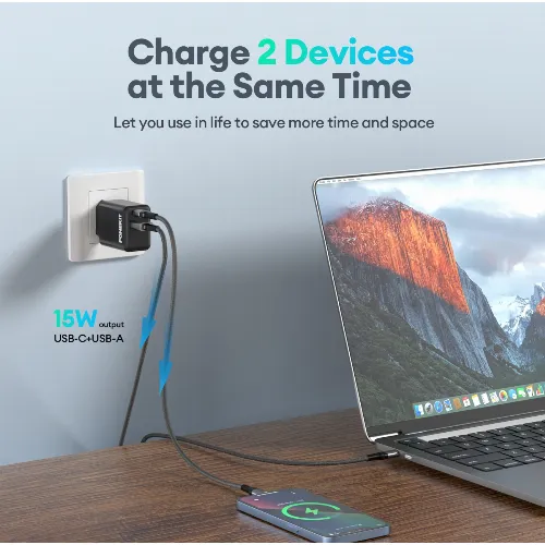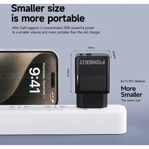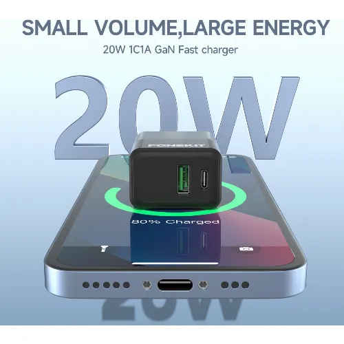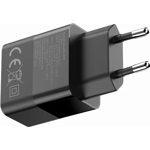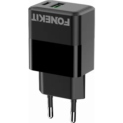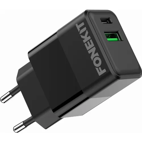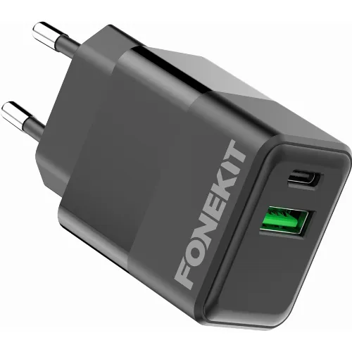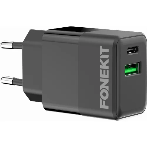 FoneKit Dubbele 20W lader, USB-C + USB-A, zwart