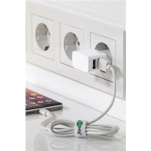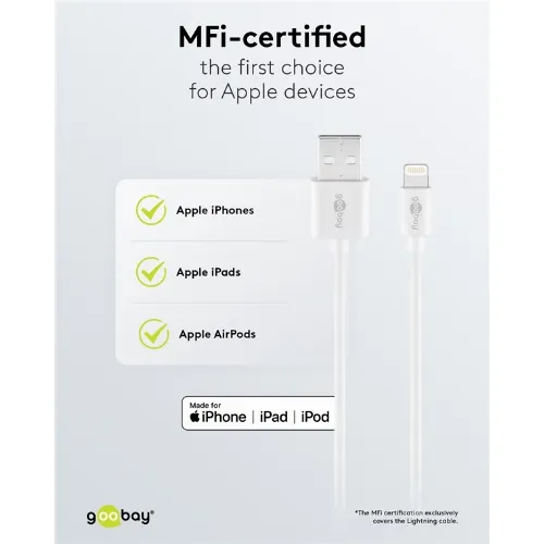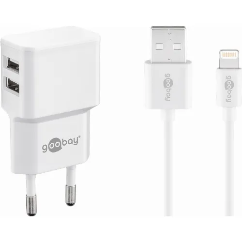 Goobay Apple Lightning Dual laddningssats (12 W) Strömförsörjningsenhet med 2x USB-uttag och Apple Lightning-kabel 1 m (vit)