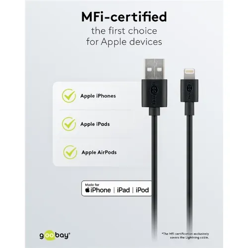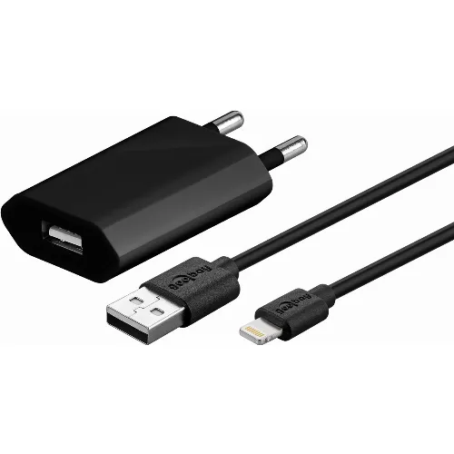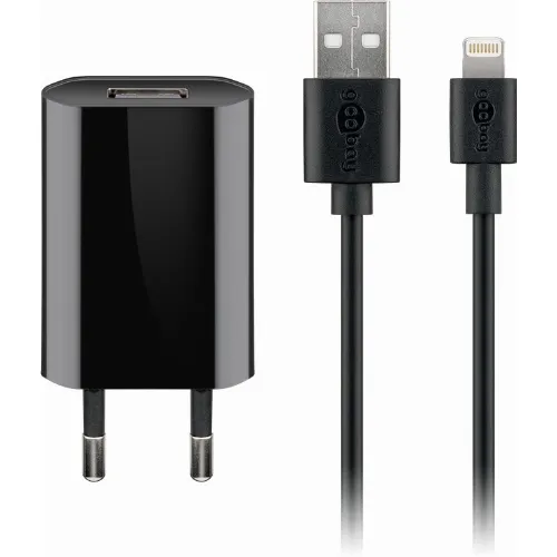 Goobay Apple Lightning laddningssats (5 W) Strömförsörjning med Apple Lightning-kabel 1 m (svart)