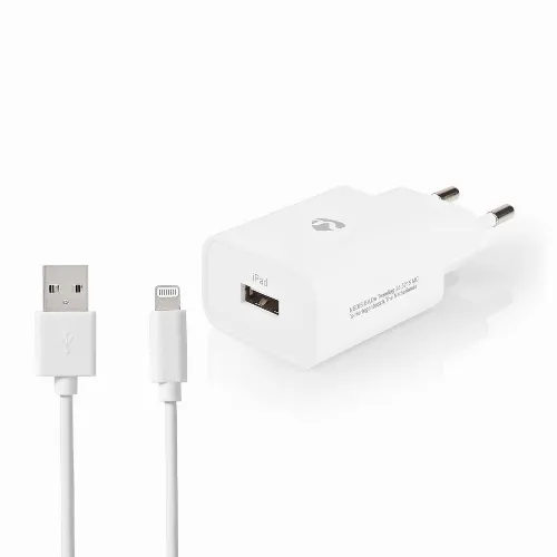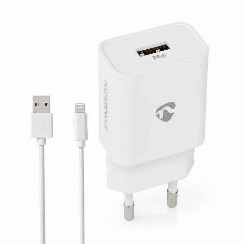 Nedis Oplader | 12 W | 1x 2.4 A | Outputs: 1 | USB-A | Lightning 8-Pins (Los) Kabel | 1.00 m | Single Voltage Output | Wit