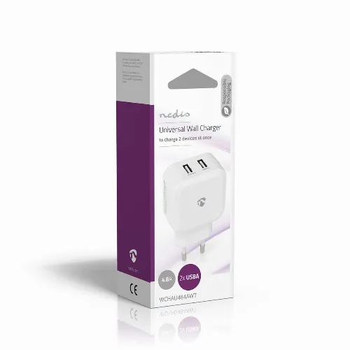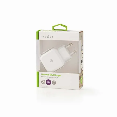 Nedis Oplader | 24 W | 2x 2.4 A | Outputs: 2 | 2x USB-A | Geen Kabel Inbegrepen | Single Voltage Output | Wit