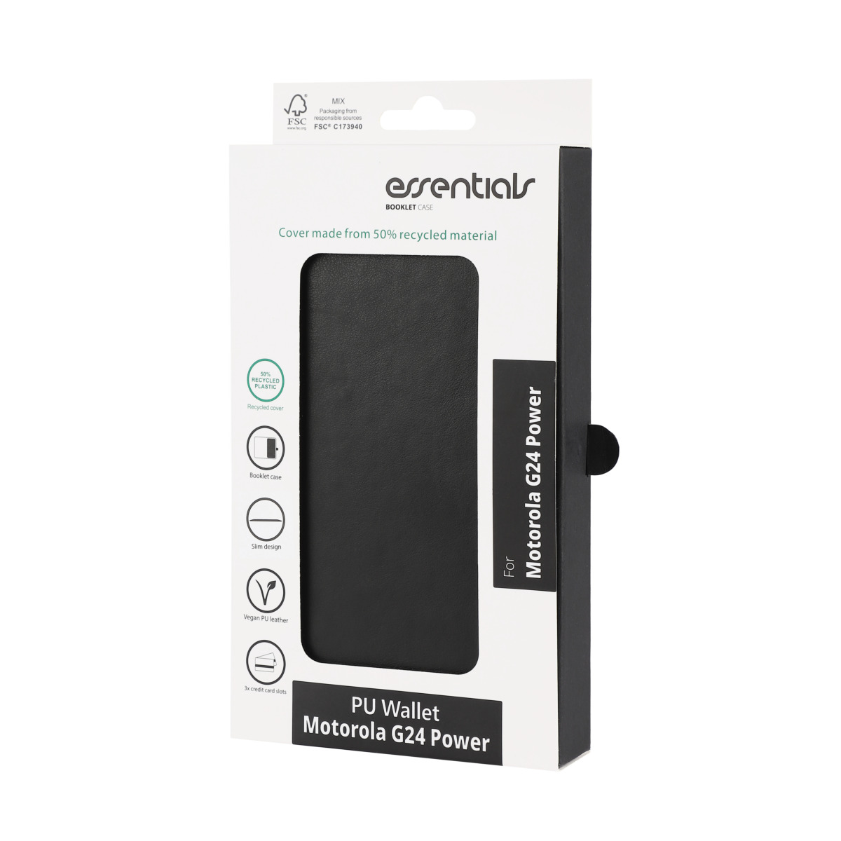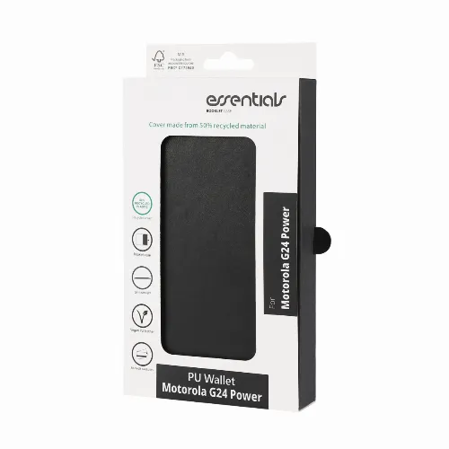 Essentials Motorola Moto G24 Power PU plånboksfodral med 3-kortplatser, Svart