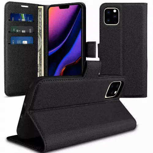 Imitatieleren portemonnee hoesje met kaartsleuf voor iPhone 16, zwart
