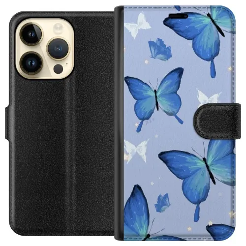 Portemonnee-hoesje voor Apple iPhone 15 Pro met Blauwe vlinders ontwerp