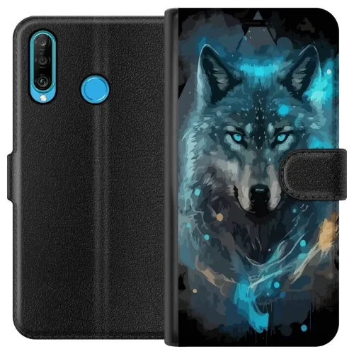 Portemonnee-hoesje voor Huawei P30 lite met Wolf ontwerp