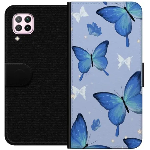 Portemonnee-hoesje voor Huawei P40 lite met Blauwe vlinders ontwerp