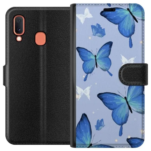 Portemonnee-hoesje voor Samsung Galaxy A20e met Blauwe vlinders ontwerp