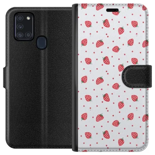 Portemonnee-hoesje voor Samsung Galaxy A21s met Aardbeien ontwerp