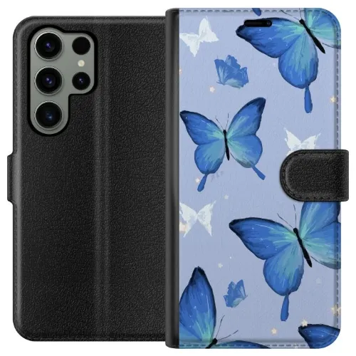 Portemonnee-hoesje voor Samsung Galaxy S23 Ultra met Blauwe vlinders ontwerp