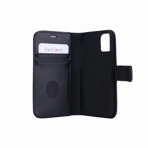 RADICOVER Radiation protected Mobilewallet Leather iPhone 12 Mini 2in1 Magnetcover Black 3-Led RFID