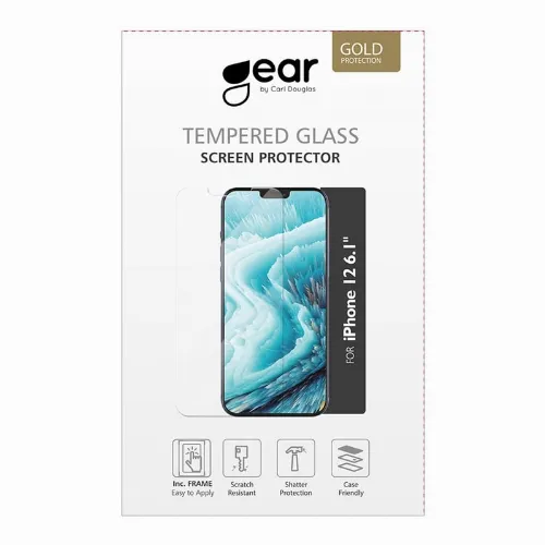 GEAR Härdat Glas 2,5D Full Cover Clear Iphone 12 / 12 Pro Incl. Monteringsram